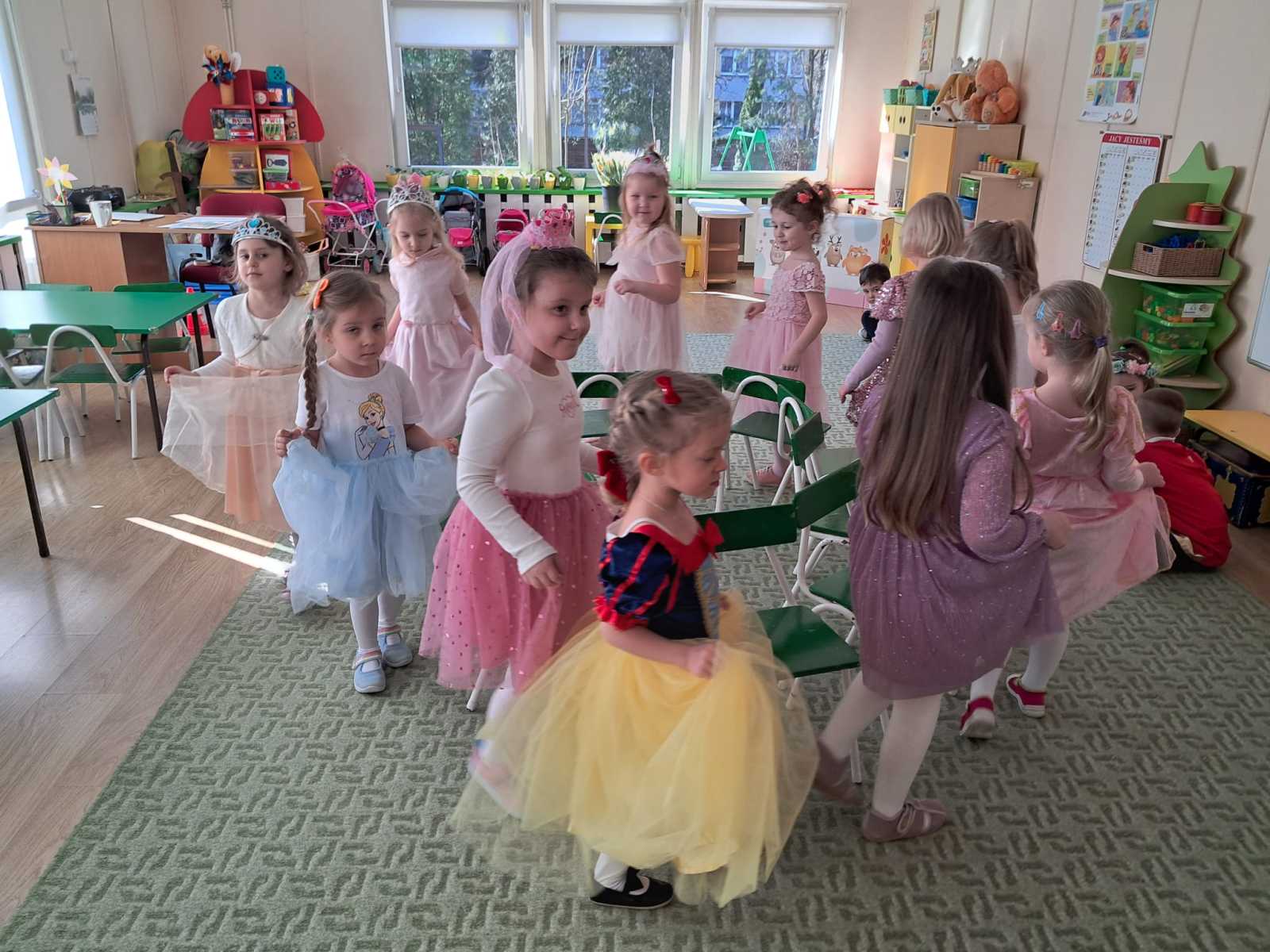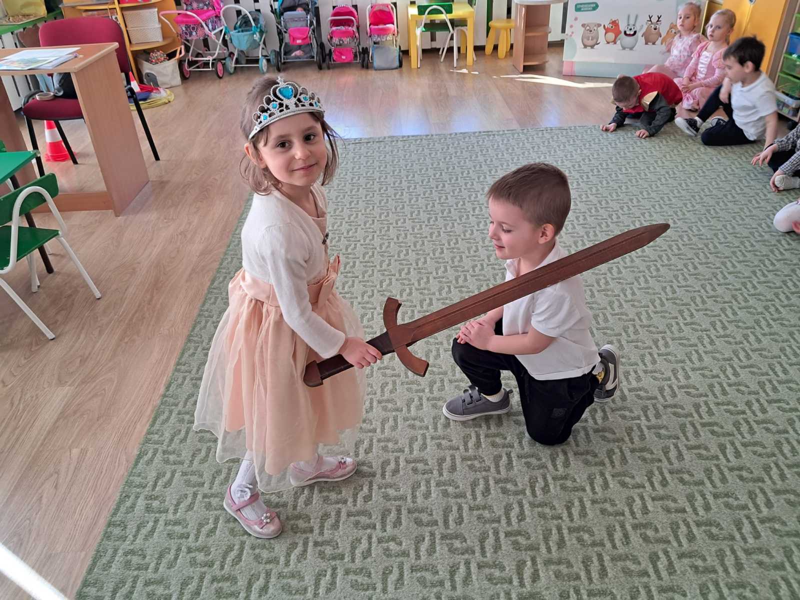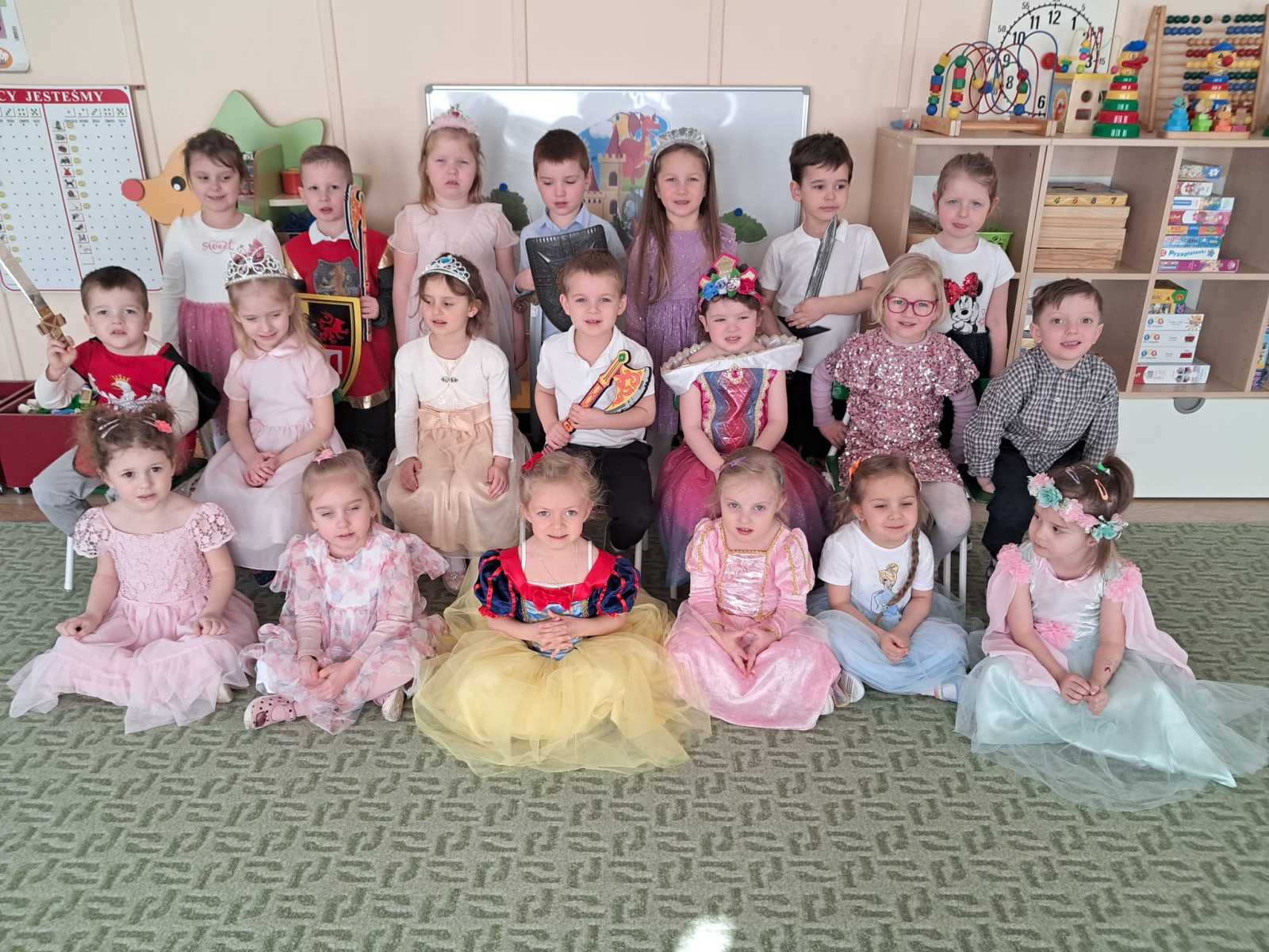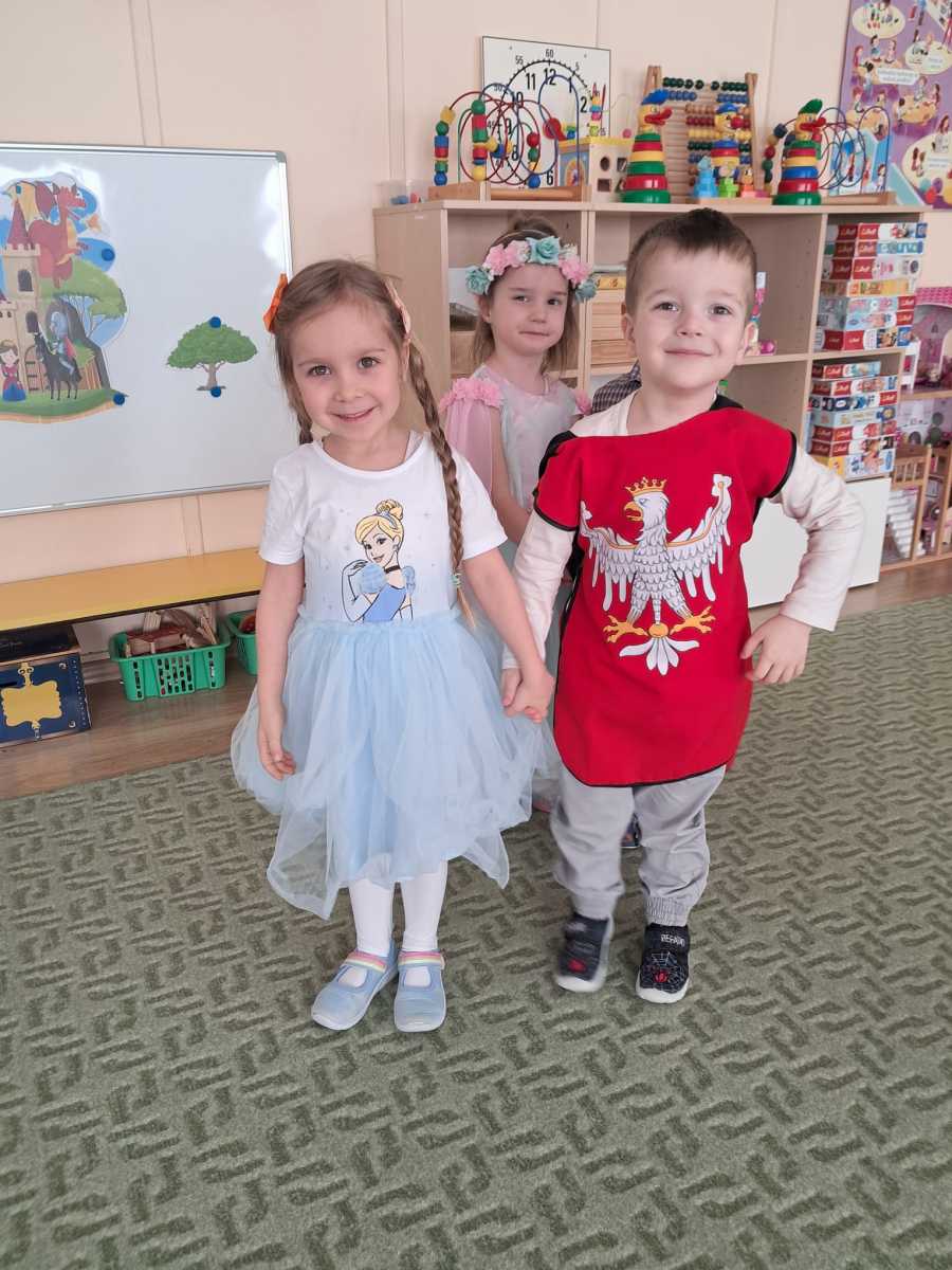 Z okazji Dnia Kobiet i Dnia Mężczyzn odbyły się zabawy integracyjne pod hasłem ,,Księżniczki i rycerze”. Dzieci wcielały się w role ucząc się dworskiej gracji oraz rycerskich zasad. Za aktywny udział w zabawach każdy otrzymał Certyfikat prawdziwej księżniczki oraz prawdziwego rycerza.