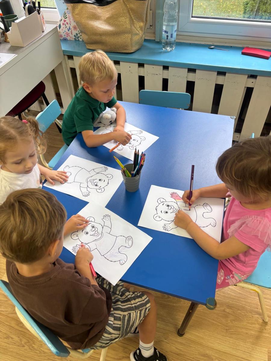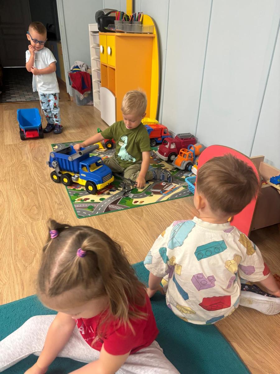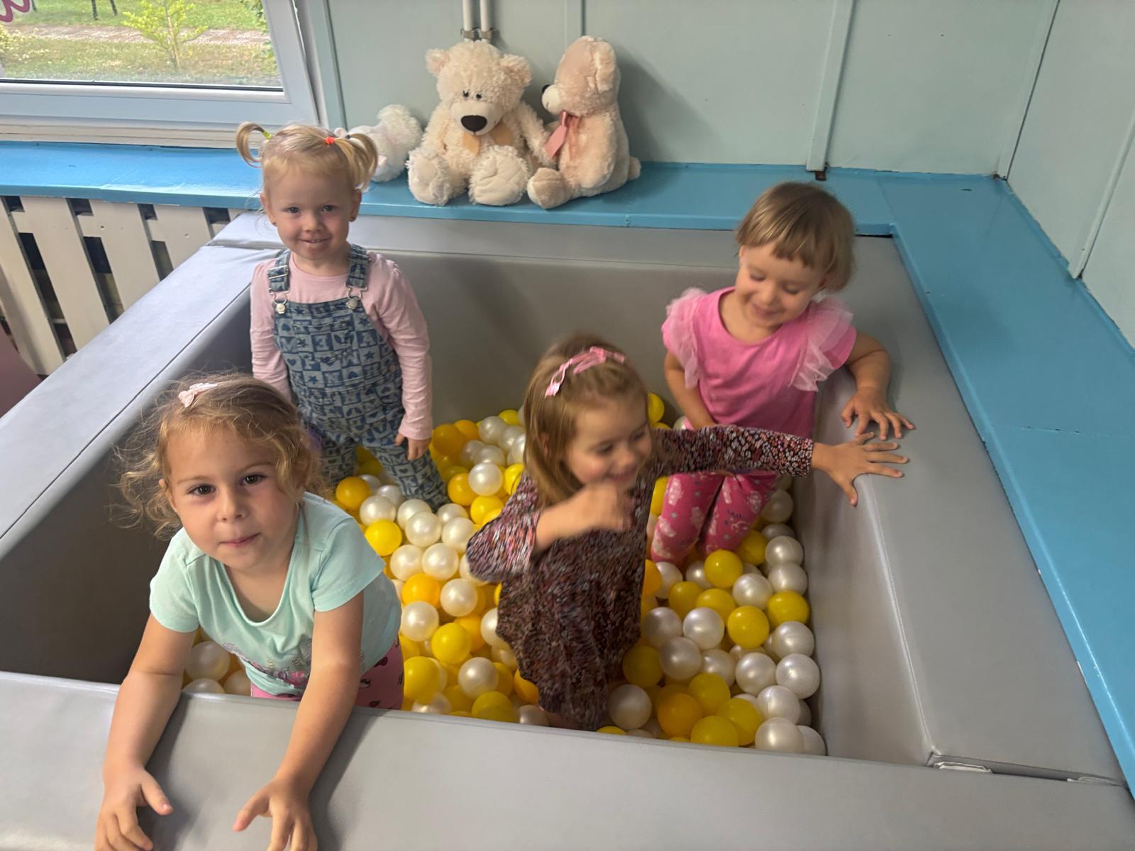 Dzielne maluszki poznają swoją salę, zabawki i przedszkolny ogród.  Wspólnie uczą się przedszkolnych zasad i świetnie się przy tym bawią!