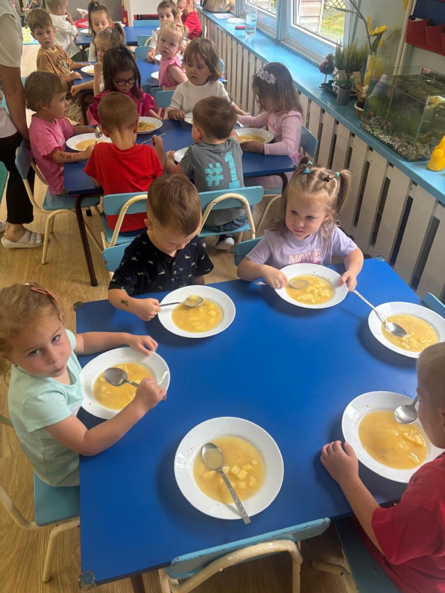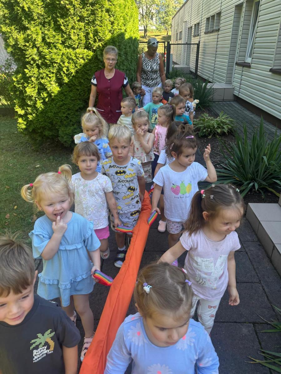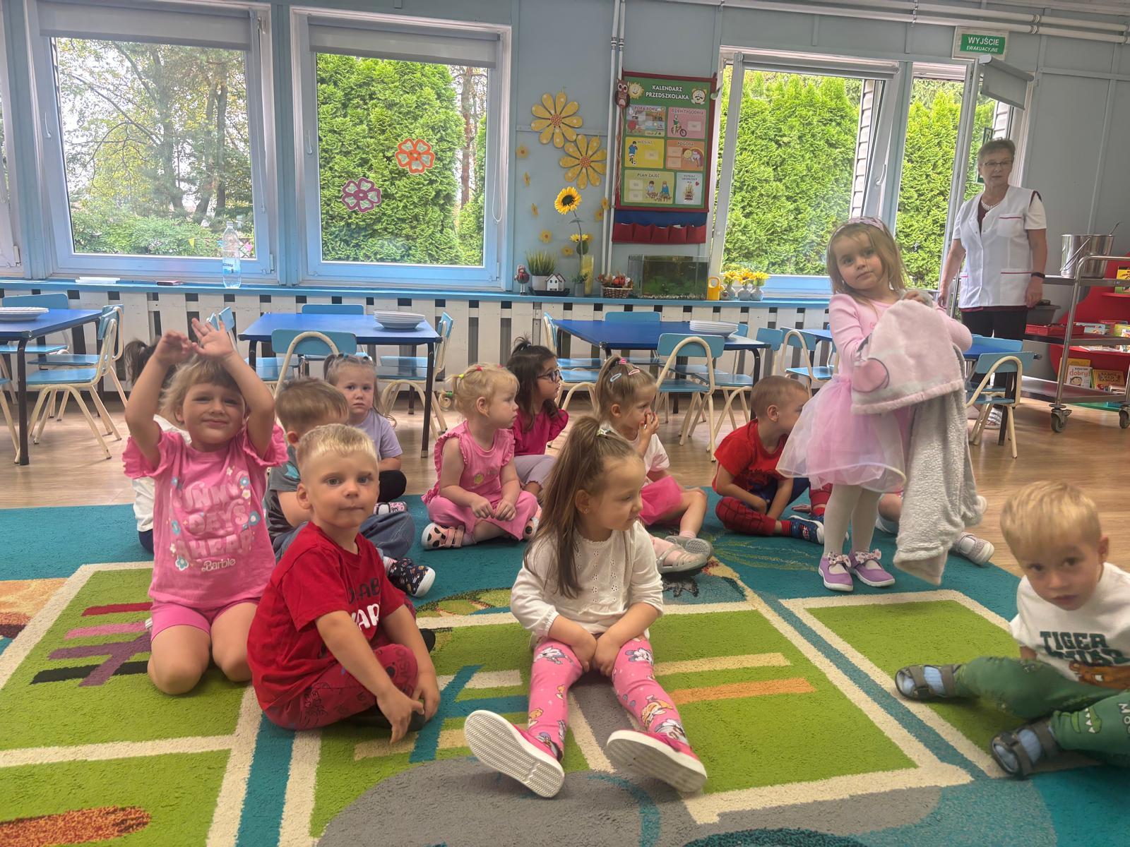 Dzielne maluszki poznają swoją salę, zabawki i przedszkolny ogród.  Wspólnie uczą się przedszkolnych zasad i świetnie się przy tym bawią!
